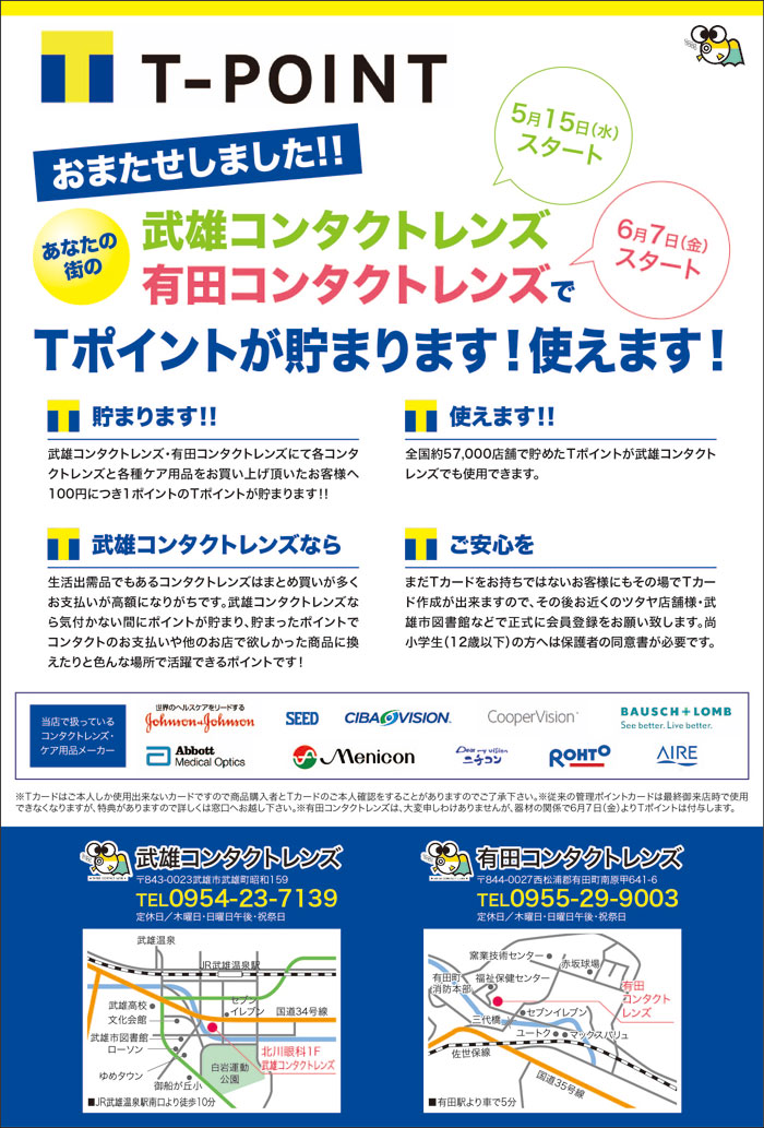 武雄コンタクトレンズでは使い捨てコンタクトレンズ、遠近両用コンタクトレンズ、カラーコンタクトレンズなどさまざまなコンタクトレンズを取り揃えています。あなたのライフパターンにあったものをご提案いたします。